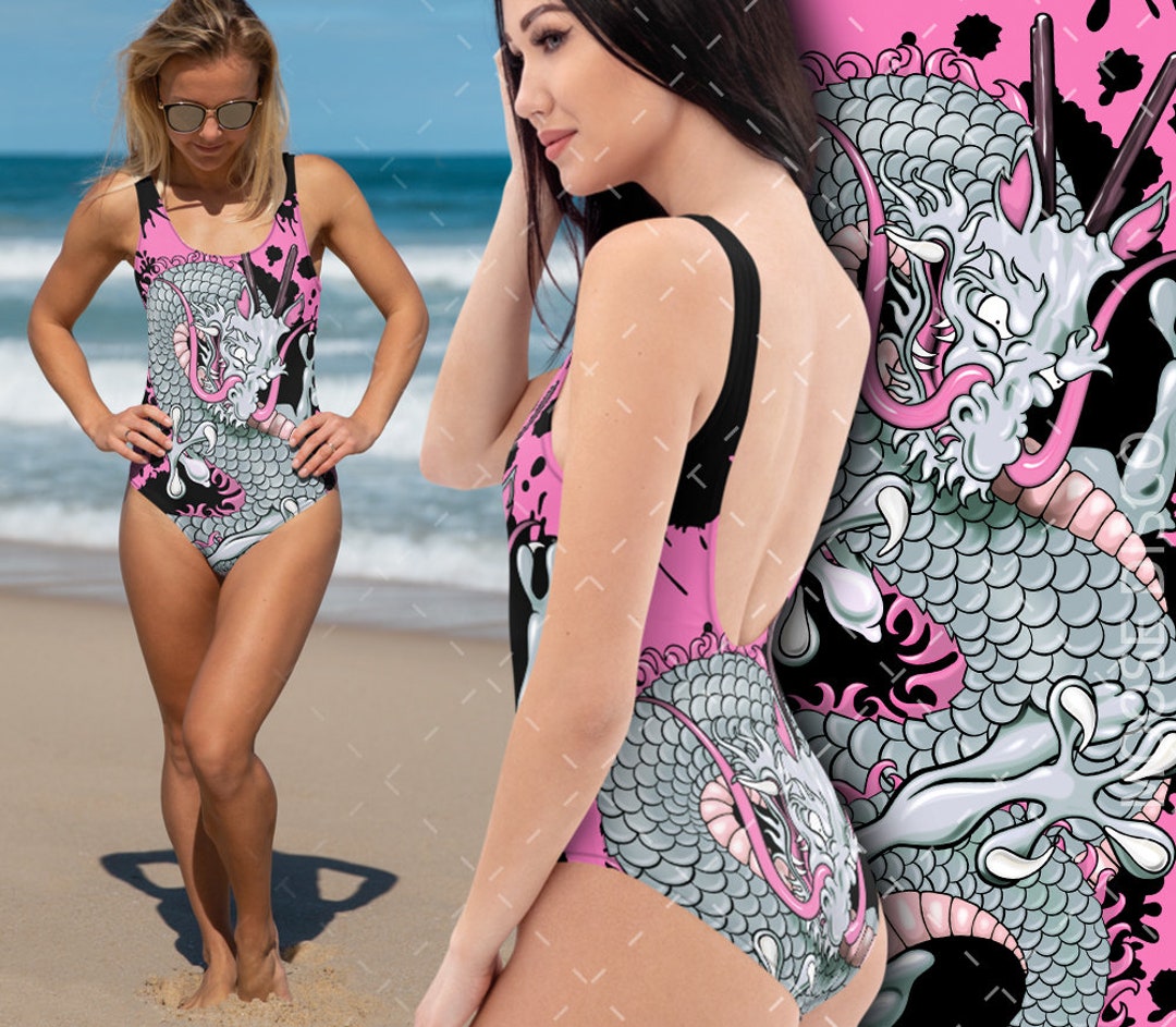 Tattoo Inspired Pink And Blue Grey Japanese Dragon Bathing Etsy Uk